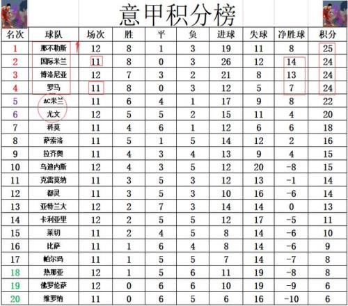 積分榜方面,那不勒斯今天主場贏球止住頹勢后,先賽的他們超過國米和羅馬1分,暫時重回榜首。博洛尼亞豪奪3連勝,暫時追上國米和羅馬,凈勝球優劣勢排在第3。尤文無力贏球追上AC米蘭,差AC米蘭2分排在第6。