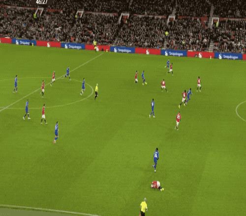 上半場(chǎng)補(bǔ)時(shí)階段,曼聯(lián)獲得角球,B費(fèi)將球開出,約羅做了一個(gè)完美的擋拆,卡塞米羅后點(diǎn)頭球破門。
